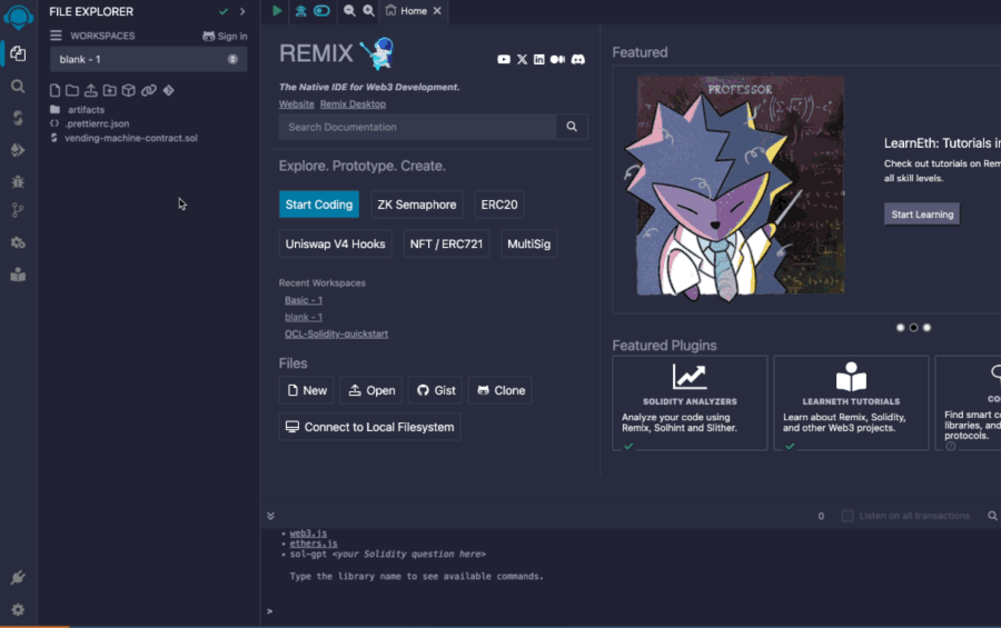 VendingMachinecontract to theLocalhostnetwork, then go to the "Deploy & Run Transactions" tab and click "Deploy."